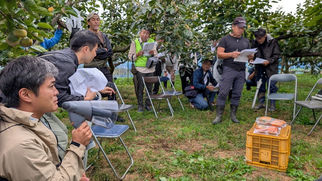 立毛品評会:栽培管理技術を審査する品評会で果樹園が審査の対象となります。