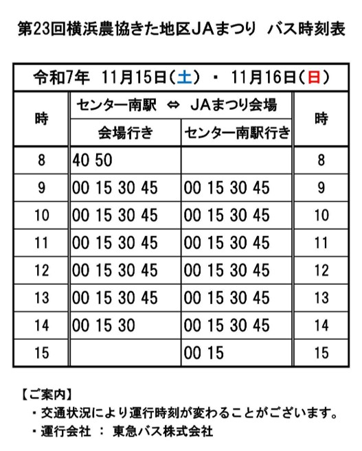 当日は東急バス株式会社による送迎バスが運行されます。皆様のご来場を心よりお待ちしております。